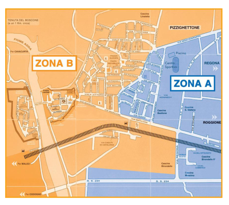 • La frazione di Ferie è compresa nella ZONA B; le frazioni di Regona e Roggione sono comprese nella ZONA A